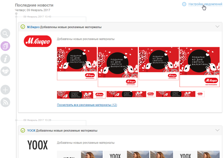 Слева от новостной ленты находится панель быстрых фильтров. Она помогает быстро находить нужные уведомления.