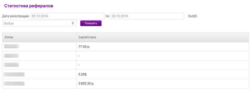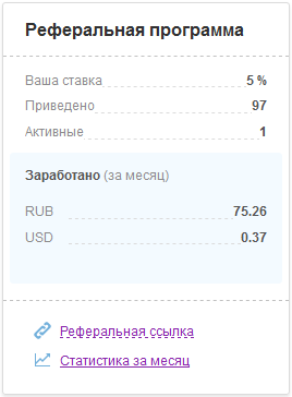 - Приведено— число рефералов, которые зарегистрировались в системе по вашей ссылке.