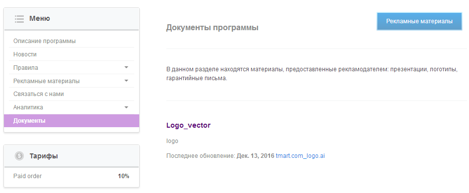 Веб-мастера увидят активные документы в разделе «Документы» на странице вашей программы.