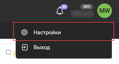 1. Наведите курсор на свой логин в правом верхнем углу и выберите «Настройки» в выпадающем списке.