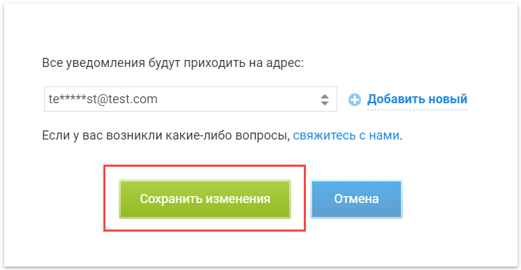 В блоке «Почтовые уведомления» потребуется сохранить настройки. Для этого в правой части экрана выберите адрес электронной почты и нажмите «Сохранить изменения».