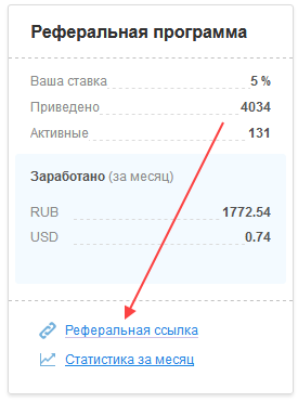 Ссылка на «Статистику за месяц» появится после того, как вы приведете первого реферала.