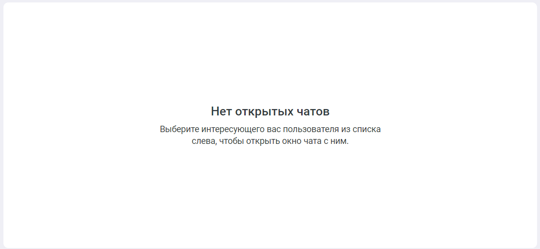 Если у вас еще нет активных чатов, то после перехода в окно чата вы увидите следующее: