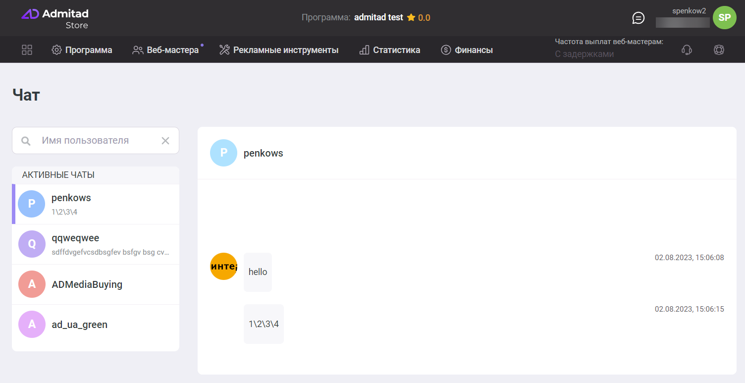 - Не открывается чат с выбранным веб-мастером