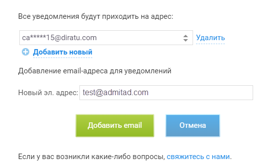 Готово, вы добавили новый email для почтовых уведомлений.