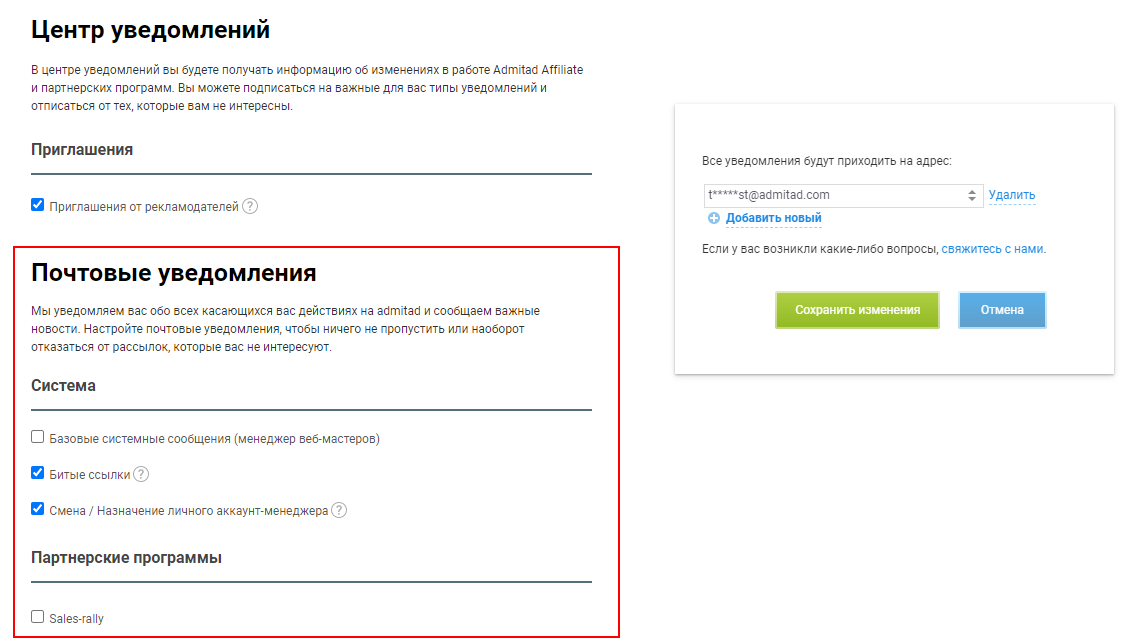 #22: Как настроить почтовые уведомления в аккаунте веб-мастера Admitad