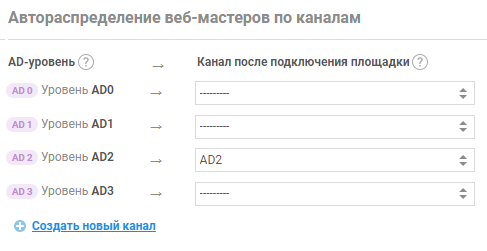Автораспределение используется редко, так как фильтр есть только по уровню доверия веб-мастера. Удобнее и точнее распределять веб-мастеров по каналам вручную, хотя это и занимает больше времени.