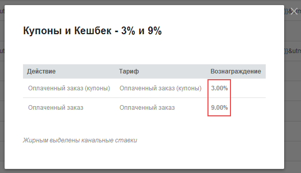 - если шрифт обычный — значит, у канала нет своих ставок, и для него действуют стандартные ставки тарифа программы.