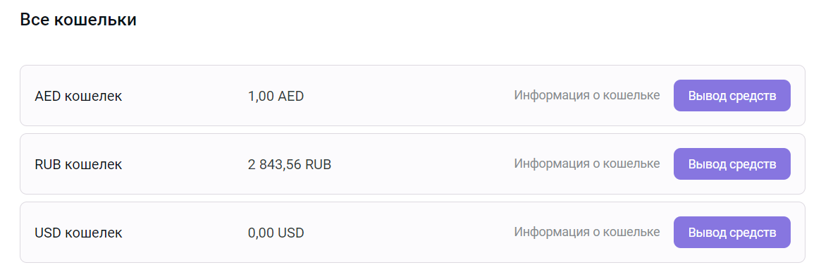Если валюта кошелька в Wallet отличается от валюты выбранного способа вывода, то деньги будут автоматически конвертированы в валюту способа вывода.