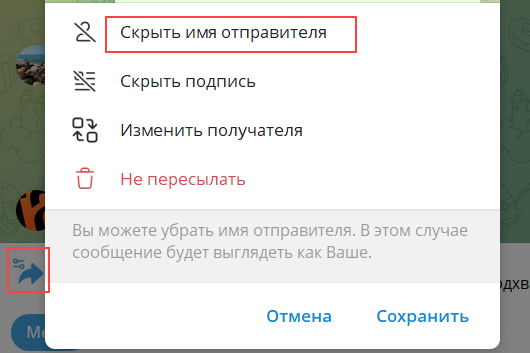 Важно: если вы пересылаете пост из другого канала, скройте имя отправителя для защиты конфиденциальности и обеспечения информационной безопасности.