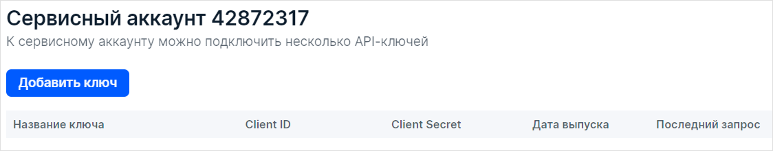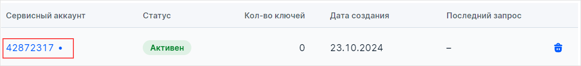 - Нажмите на номер созданного аккаунта в колонке «Сервисный аккаунт».