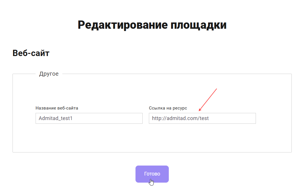 • Для площадок с типом «Веб-сайт» или «Веб-сервис» ссылка не должна содержать домены соцсетей или мессенджеров.