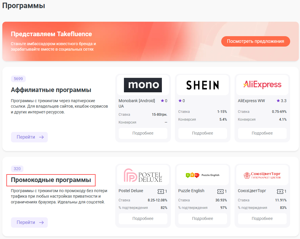 2. Программы с трекингом по промокоду и партнерской ссылке. Преимущества таких программ:
