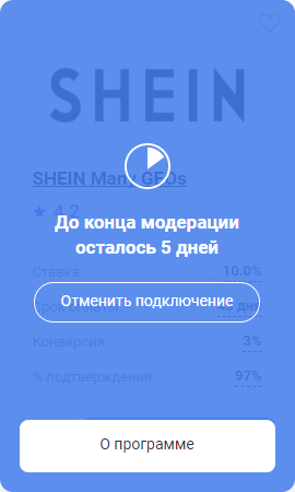 Узнать, сколько времени осталось до конца модерации, можно в карточке программы в Admitad Store.