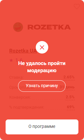 Чтобы узнать, почему рекламодатель отклонил заявку, в карточке программы нажмите «Узнать причину».
