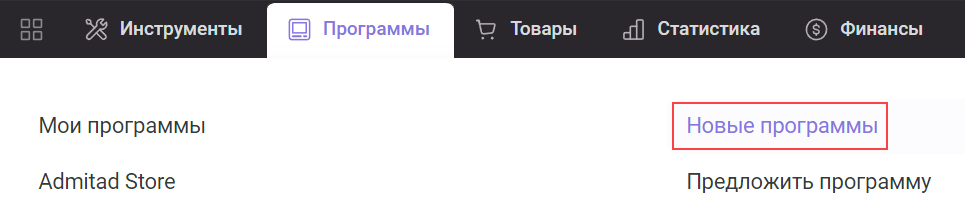 Если нам это удастся, то, когда партнерская программа будет запущена, вы увидите ее в разделе «Новые программы» («Программы» → «Новые программы»).