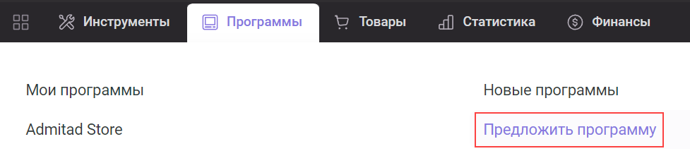 1. Чтобы предложить программу, в верхнем меню выберите «Программы» → «Предложить программу».