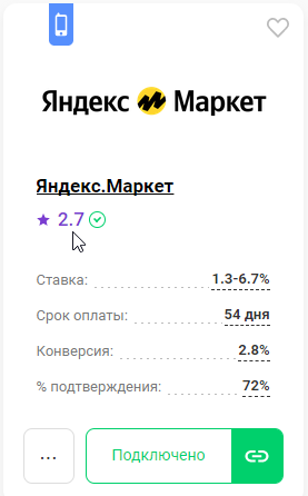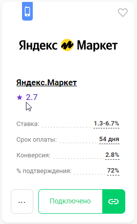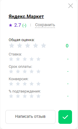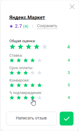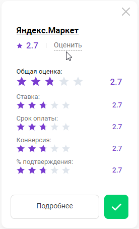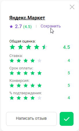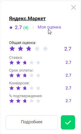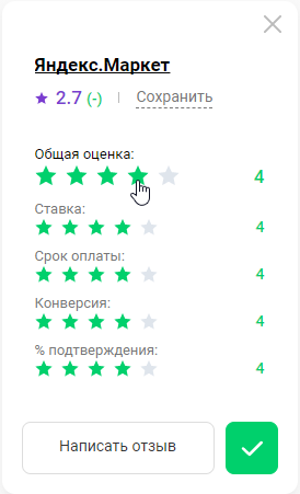 В каталоге Admitad Store найдите программу, которой вы хотите поставить оценку, и в ее карточке нажмите на общее значение рейтинга.