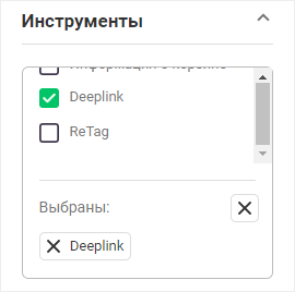 Чтобы найти программы, которые поддерживают deeplink, в Admitad Store в фильтре «Инструменты» отметьте галочкой опцию «Deeplink». Вы увидите все программы, в которых можно получить deeplink.