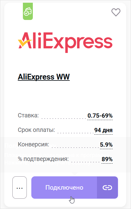 Чтобы получить стандартную партнерскую ссылку, вы должны быть подключены к программе.