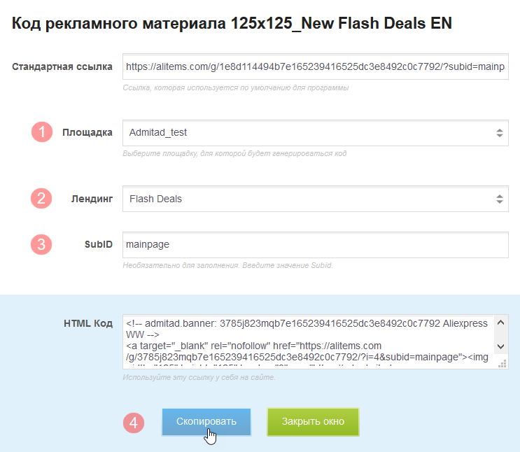 4. Скопируйте готовую ссылку и разместите ее на своей площадке.