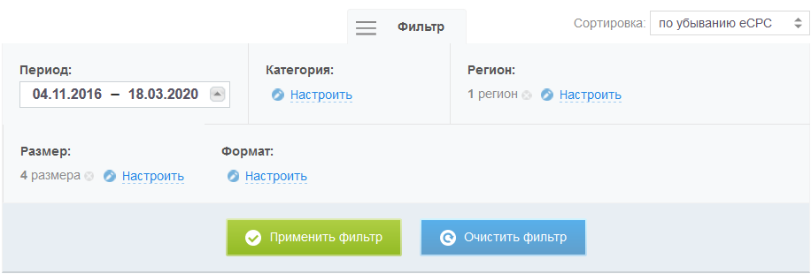 - Период— время, когда баннеры были добавлены в программу. Чем позже добавлен баннер, тем выше вероятность, что он актуален.