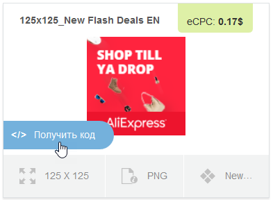 3. Выберите нужный баннер и нажмите «Получить код».