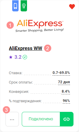 2. Перейдите на страницу программы: для этого нажмите на ее логотип (1), название (2) или на кнопку «Подробнее» (3).
