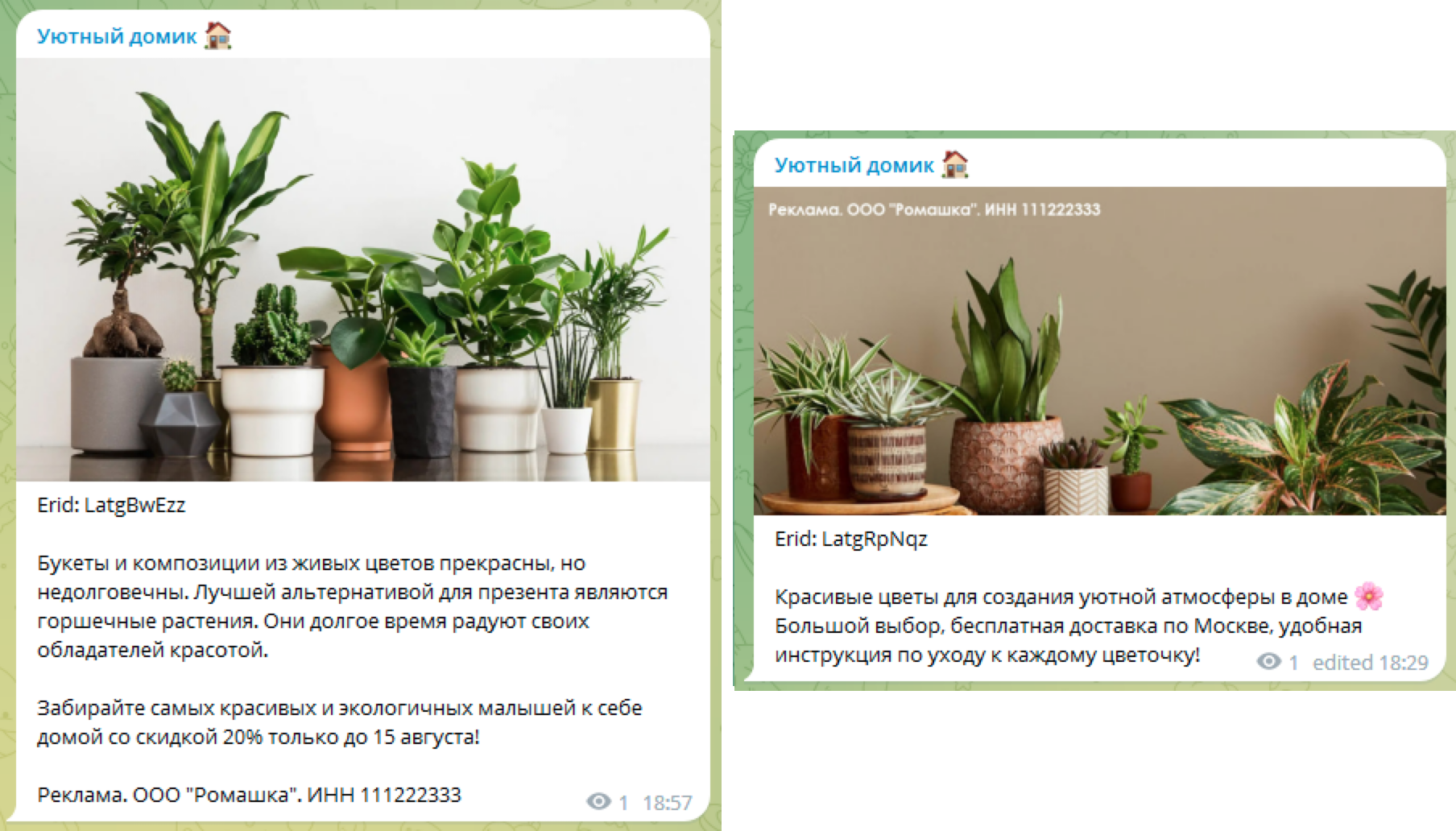 По мнению ФАС, если в одном рекламном посте несколько объектов рекламирования, которые относятся к разным рекламодателям, то креатив нужно зарегистрировать отдельно для каждого рекламодателя, чтобы получить токен (идентификатор) на каждый из них.