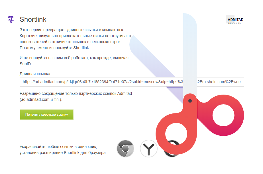 Важно: инструмент сокращает только партнерские ссылки Admitad Partner Network.
