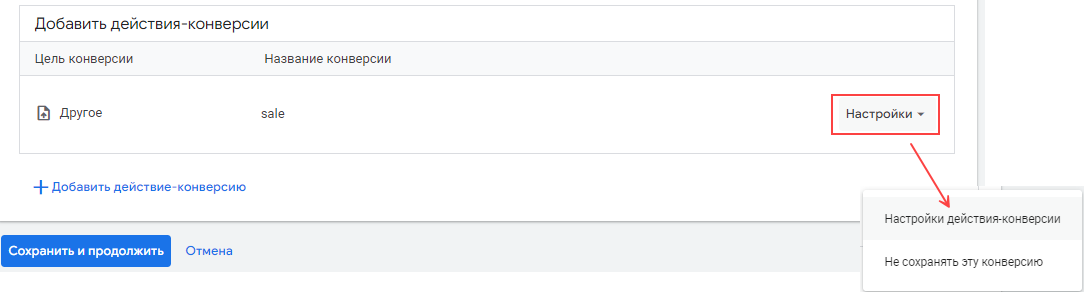2. На странице «Настройка отслеживания конверсий»: