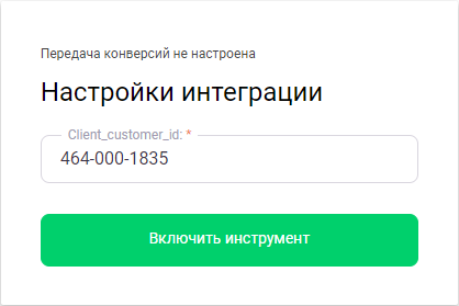 5. В поле «Client_customer_id» введите ваш Customer ID и нажмите «Включить инструмент».