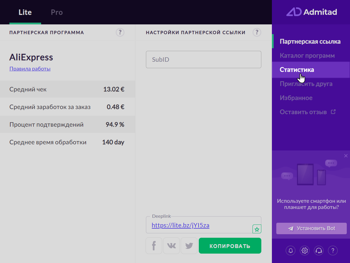 Отредактирована: 31 день назадПредположим, на одном из сайтов вы наткнулись на товар, который, как вам кажется, должен понравиться вашим подписчикам в Telegram. Вы скопировали ссылку на него в расширении Admitad Extension и поделились в канале. Теперь вам интересно, верным ли оказался ваш расчет и заинтересовались ли подписчики. Проверить это вы можете в расширении на вкладке «Статистика».
