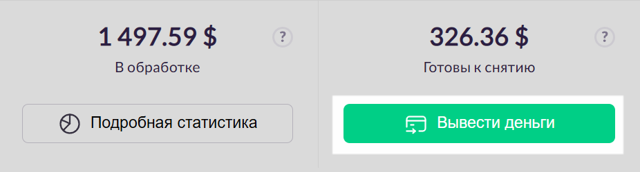 Когда вознаграждение окажется в «Готовы к снятию», вы сможете получить его, нажав «Вывести деньги». После этого вы попадете на страницу формы выплаты.