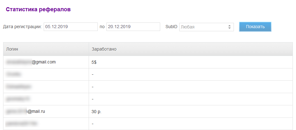 Вы попадете на страницу статистики по рефералам (приглашенным пользователям) в вашем аккаунте на admitad.com.