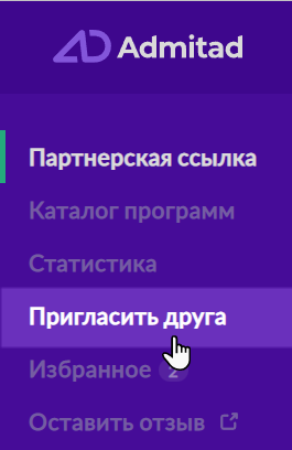 - Размер бонуса — 5% от комиссии, которую Admitad Partner Network получил c заработка друзей.
