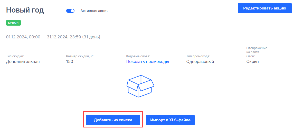 Информацию об акциях с Ozon нужно вносить на Такпродам вручную, данные автоматически не переносятся. Все изменения в акциях на Ozon должны быть также отражены на Такпродам.