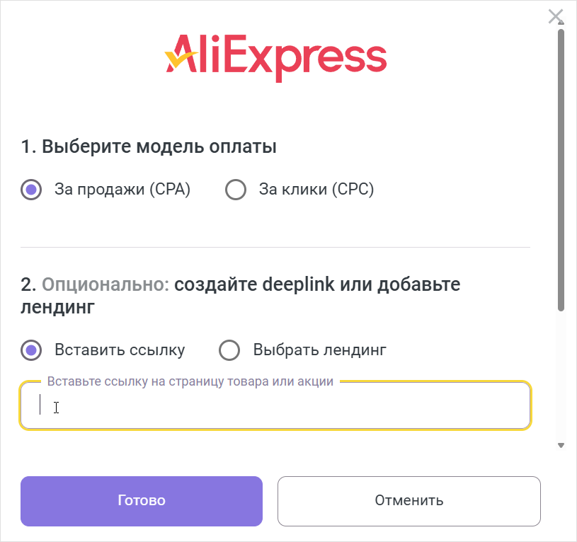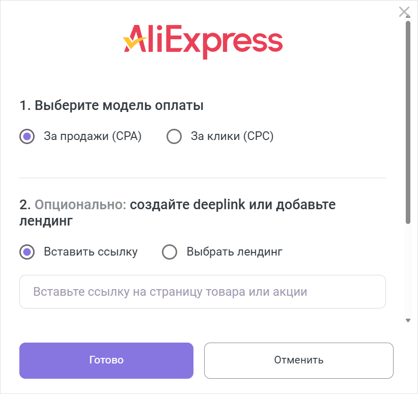 Скопируйте deeplink или скачайте их в виде CSV-файла и разместите на своей площадке. Как использовать партнерскую ссылку