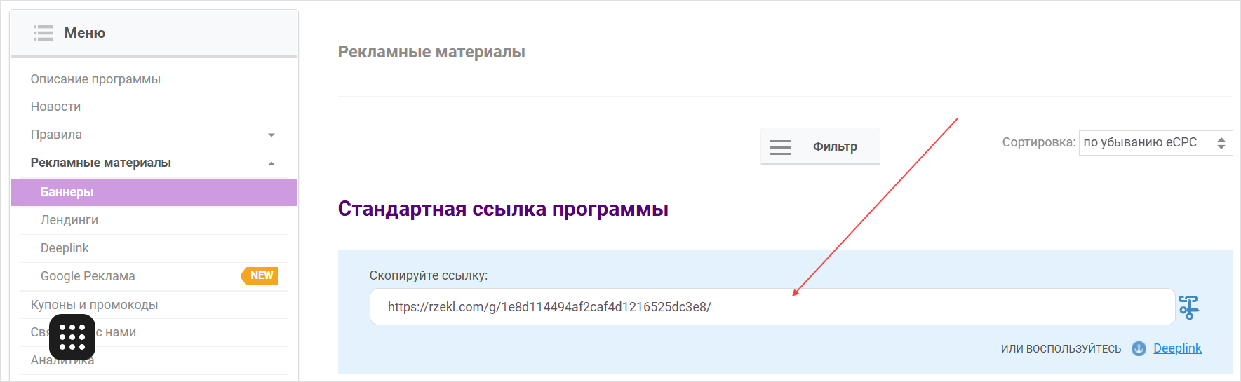 Если на странице с рекламными материалами нет раздела или кнопки «Deeplink», значит, в этой программе он не поддерживается. В этом случае скопируйте стандартную партнерскую ссылку и разместите ее на своей площадке. Как найти программы, которые поддерживают deeplink